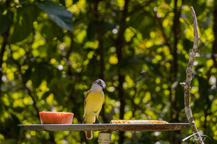 Como cada ave, tiene su momento durante el día, decidí centrar primero mi atención en aquellas que visitan la bandeja de frutas las cuales suelen llegar con la salida del sol. Ya caída la tarde, cuando el sol es idóneo y genera buenos tonos y contrastes, me centré en las aves que llegan a los comederos de semillas y algunos canarios que suelen llegar al espejo de agua.